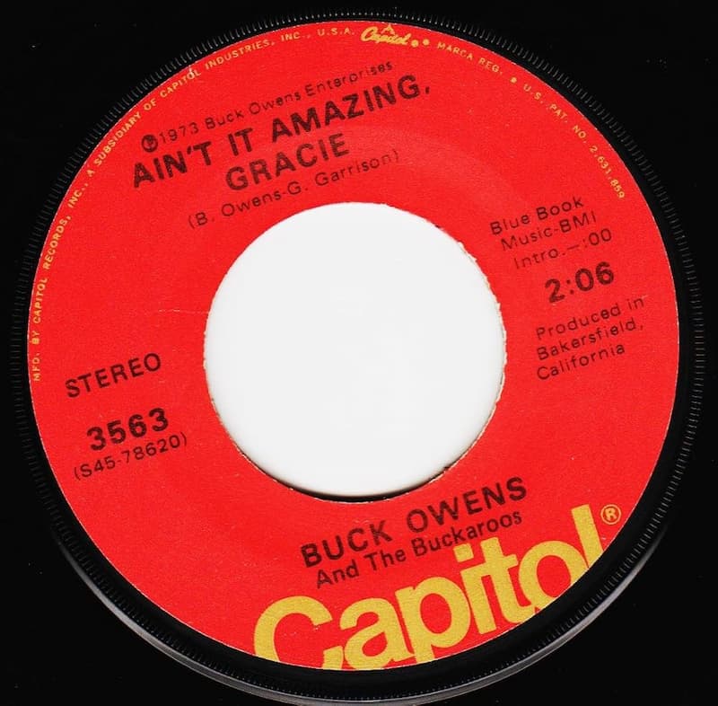 “Ain’t It Amazing, Gracie” is both a Buck Owens single and the title track of his 1973 Capitol album. The song was co-written by Owens and Glen Garrison, and issued as a 7-inch 45 on Capitol with catalogue number 3563, credited to Buck Owens & His Buckaroos. Chart summaries place its U.S. country release in early 1973, tied directly to the album of the same name.