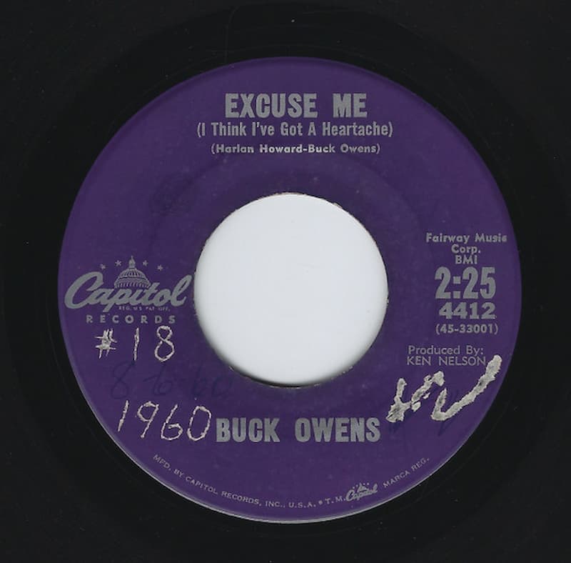 The partnership between Buck Owens and Harlan Howard is another key part of the song’s legacy. Howard would go on to write or co-write many of Owens’ most important hits, including “Above and Beyond,” “I’ve Got a Tiger by the Tail” and “Under the Influence of Love.” When Capitol issued the 1961 LP Buck Owens Sings Harlan Howard, “Excuse Me (I Think I’ve Got a Heartache)” was one of the centerpiece songs, a prime example of how Howard’s plainspoken, emotionally precise writing fit Owens’ sharp Bakersfield sound. That album is still praised by critics as one of Owens’ most enjoyable and consistent sets.