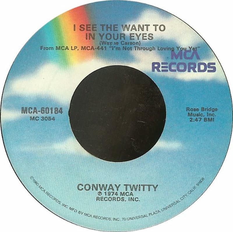 However, Carson earned perhaps his greatest support from Gary Stewart, who reached #1 with Wayne’s “She’s Acting Single (I’m Drinking Doubles)” in 1975. Stewart’s first hit had also been a Carson composition, “Drinkin’ Thing,” a Top Ten record in the summer of ‘74. Wayne’s “I See The Want To In Your Eyes” was on the flip side of “Drinkin’ Thing.” Conway Twitty happened to hear “I See The Want To In Your Eyes” on his car radio during one of the rare times a deejay turned the disc over and played the “B” side of Stewart’s record.