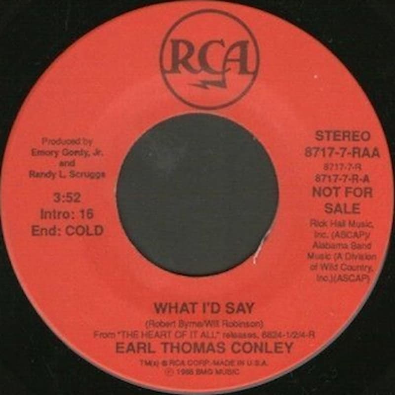 “What I’d Say” is a song written by Robert Byrne and Will Robinson, and recorded by American country music artist Earl Thomas Conley. It was released in October 1988 as the third single from his album The Heart of It All. The song was Conley’s seventeenth number one country single. The single went to number one on the U.S. and Canadian country charts and spent a total of fourteen weeks on the U.S. country chart.