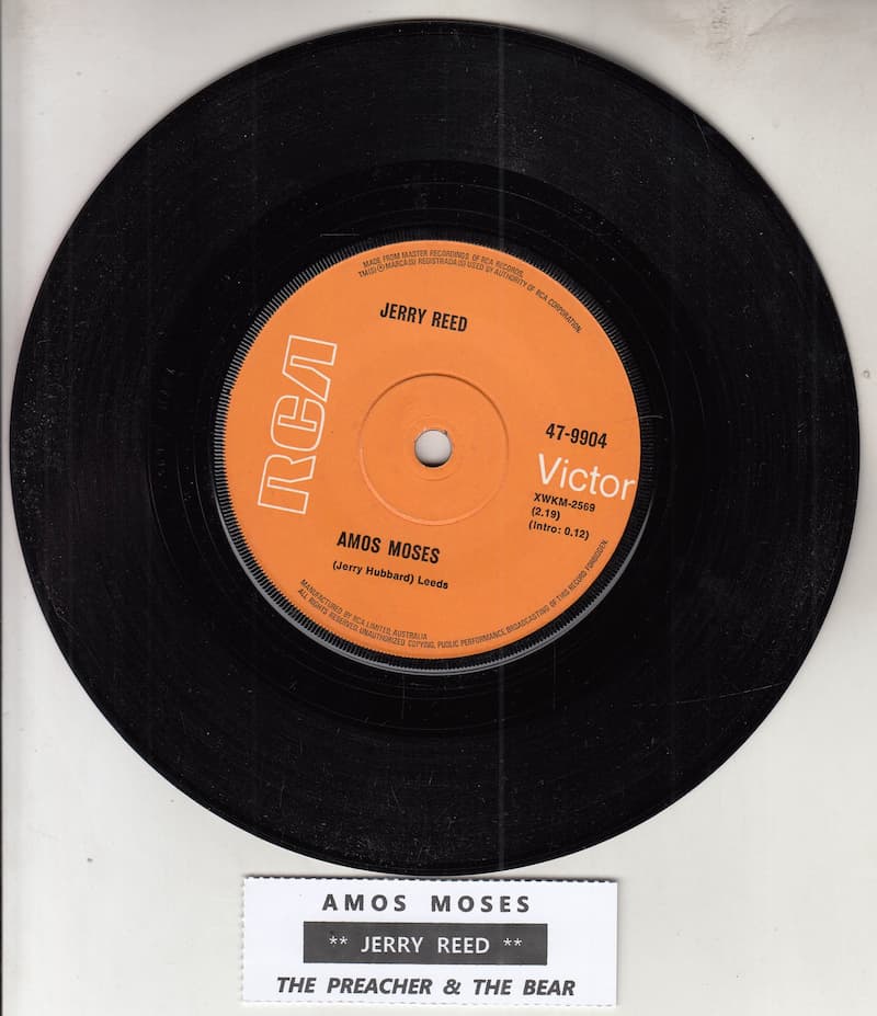 “Amos Moses” is a song written and recorded by Jerry Reed, released in October 1970 as the fourth and final single from his album Georgia Sunshine. The song became one of Reed’s biggest hits, reaching number 8 on the Billboard Hot 100 and number 16 on the Billboard Hot Country Singles chart. It also peaked at number 2 on the Canadian RPM Country Tracks chart. The single was produced by Chet Atkins and released under RCA Records. “Amos Moses” was certified gold by the RIAA for selling over one million units and was ranked number 28 on Billboard’s Year-End Hot 100 singles of 1971.