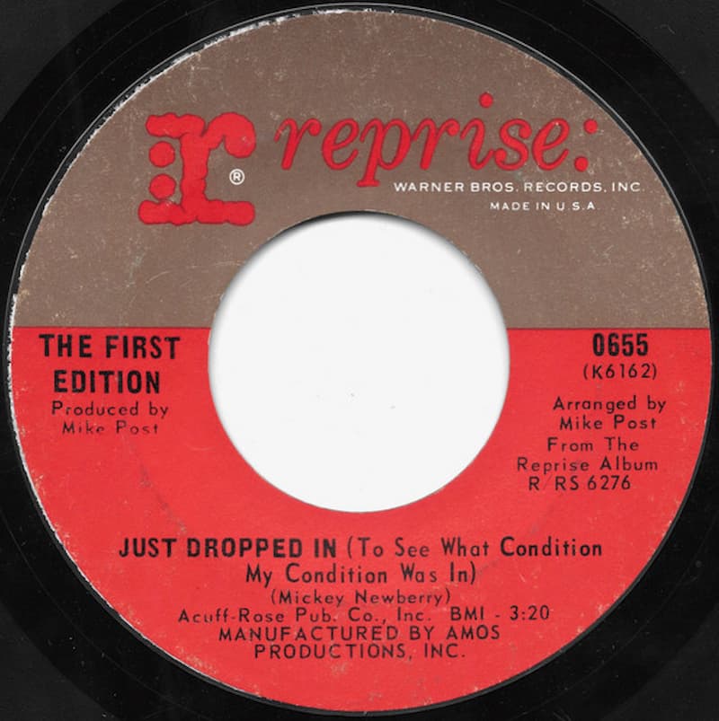 “Just Dropped In (To See What Condition My Condition Was In)” is a psychedelic-tinged rock single written by Mickey Newbury and recorded by The First Edition with Kenny Rogers on lead vocal. The group cut the track in late 1967 and released it as a single in early 1968; it was issued from the band’s self-titled debut period and became their breakthrough hit. The song’s combination of trippy imagery, economical phrasing and aggressive studio production set it apart from much of the group’s other, more country-rock oriented material.