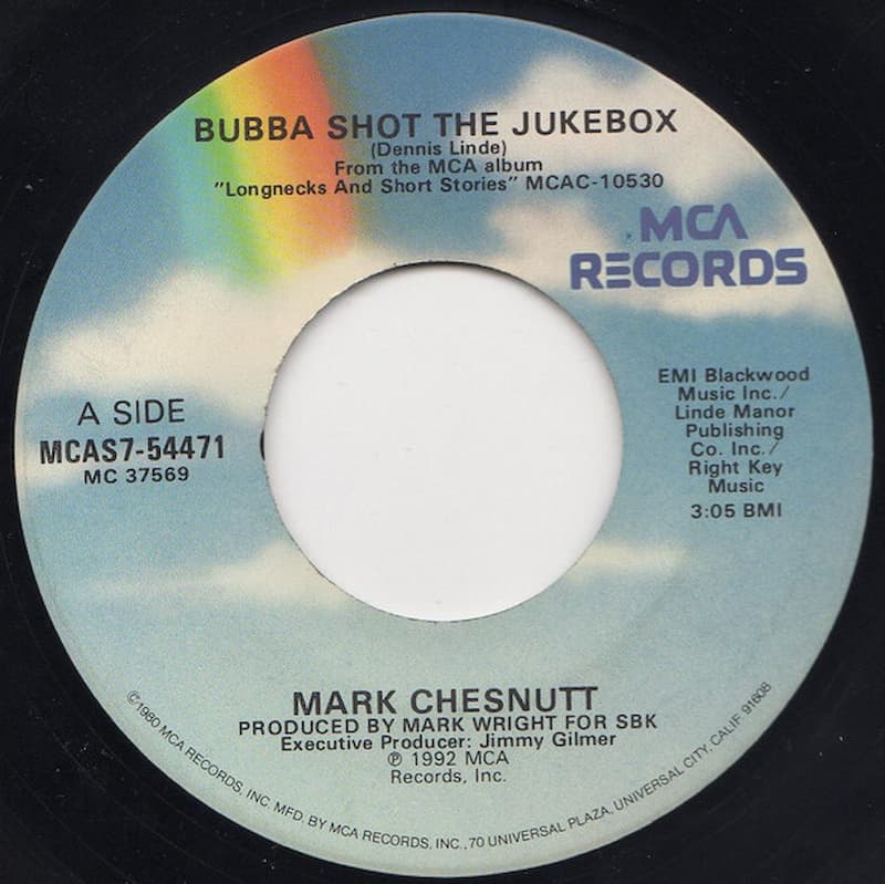 “Bubba Shot the Jukebox” is a song written by Dennis Linde, and recorded by American country music singer Mark Chesnutt. It was released in September 1992 as the third single from his album Longnecks & Short Stories. It peaked at number 4 on the U.S. Billboard Hot Country Singles & Tracks chart and at number 14 on the Canadian RPM Country Tracks chart.