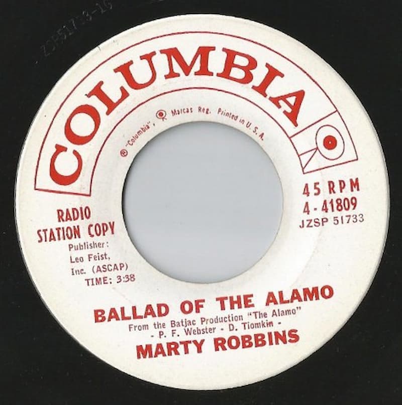 “Ballad of the Alamo” is a song written and recorded by Marty Robbins and released as a single in late 1959. The recording was issued by Columbia Records and later included on Robbins’s album More Gunfighter Ballads and Trail Songs in 1960. The song arrived shortly after the success of “El Paso” and further established Robbins as a leading interpreter of historical and narrative western material.