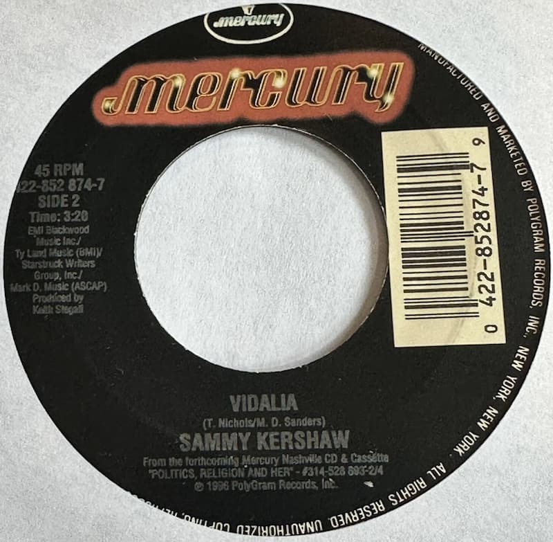 “Vidalia” is a song written by Tim Nichols and Mark D. Sanders, recorded by American country music artist Sammy Kershaw, and released in July 1996 as the second single from his fourth studio album Politics, Religion and Her on Mercury Records. The song reached No. 10 on the Billboard Hot Country Singles & Tracks chart, following the success of Kershaw’s No. 1 hit “She Don’t Know She’s Beautiful” from 1993. It marked another entry in his string of Top 10 singles during the mid-1990s.