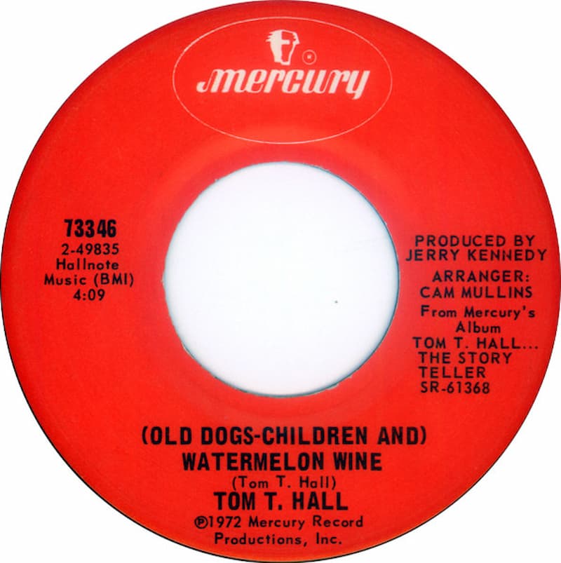 “Old Dogs, Children and Watermelon Wine” is a reflective country story song by Tom T. Hall, released in November 1972 as the second single from his Mercury Records album The Storyteller. Written by Hall, it peaked at No. 1 on the Billboard Hot Country Singles chart for one week in January 1973, charting for 13 weeks, and reached No. 24 on the Billboard Easy Listening chart. The 4:01 track, inspired by a conversation Hall had with an elderly janitor at the Carillon Hotel in Miami Beach during the 1972 Democratic National Convention, celebrates life’s simple joys: “Old dogs and children and watermelon wine / He said women get better when they get a little older.” Hall’s conversational baritone, paired with minimalist instrumentation, delivers the narrative with warmth and wisdom, as Rolling Stone noted: “It’s Tom T. at his storytelling peak, turning a bar chat into poetry.” Hall told CMT in 1998, “That old man’s words stuck with me—truth don’t need much dressing up.” The song earned a 1973 CMA nomination for Single of the Year and remains a beloved classic.